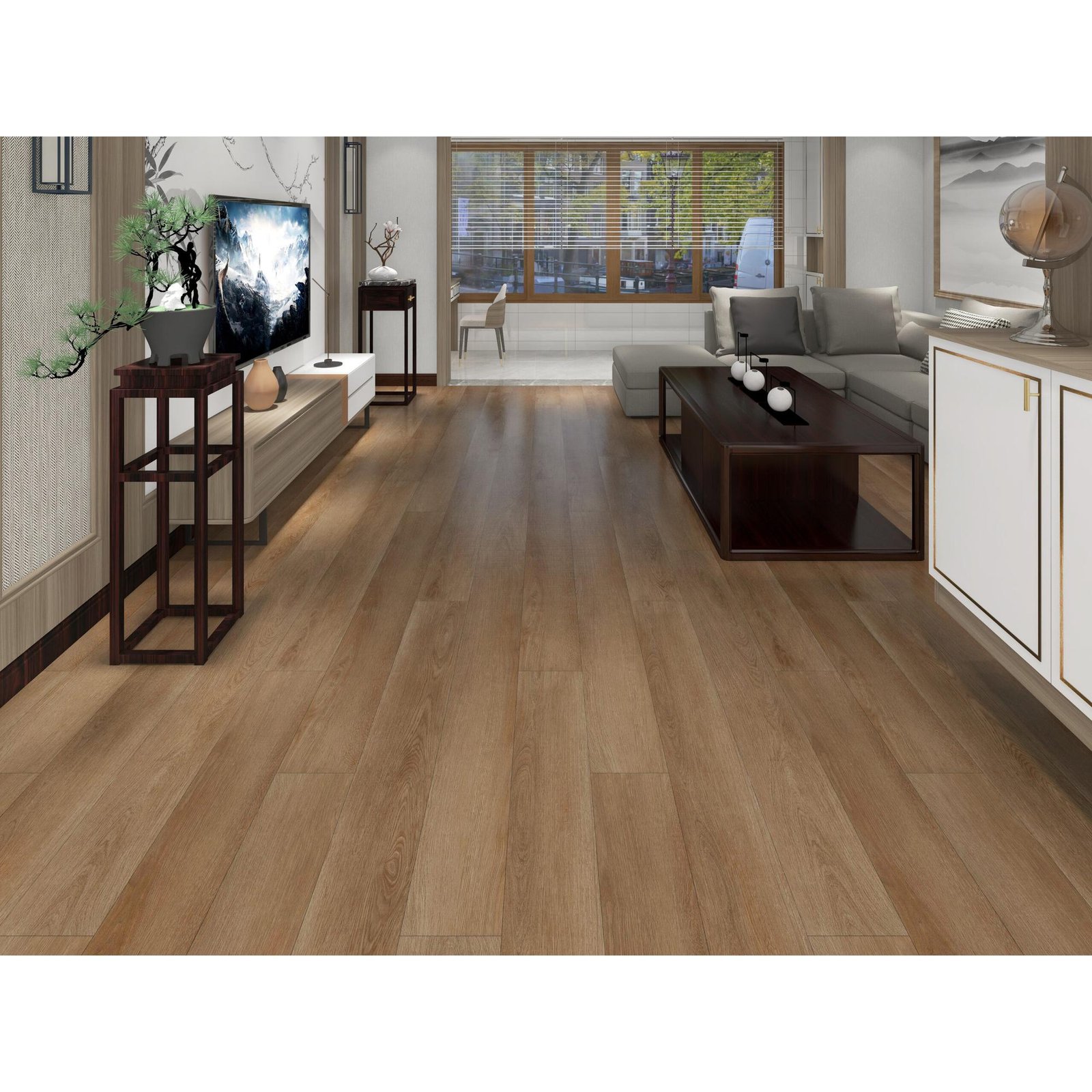 Met zijn natuurlijke houtlook en warme tinten creëert deze vloer een uitnodigende sfeer in uw leefruimte. SPC-technologie combineert esthetiek en duurzaamheid, waardoor het een langdurige en praktische oplossing biedt.